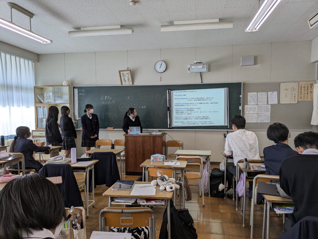 焼津高校2年生が、総合的な探究の学習の「ビジネスミッション」の単元における中間発表を行いました。
