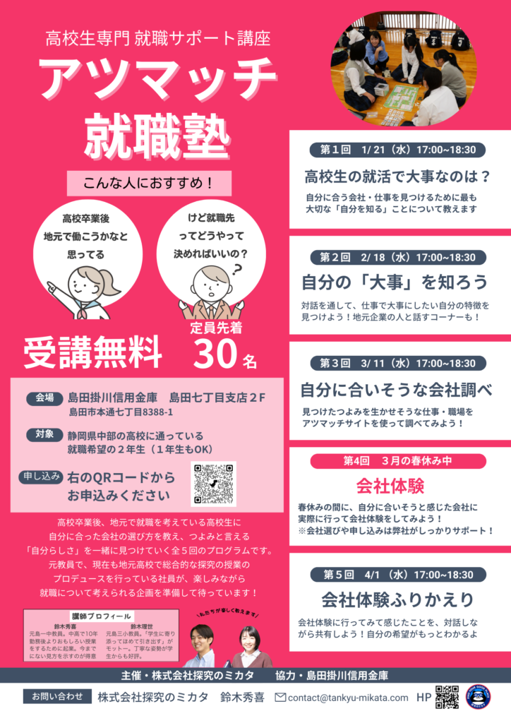 探究のミカタでは、高卒で就職を考えている現高校2年生(1年生もOKです!)向けに、キャリア支援講座「アツマッチ就職塾」を企画しました!
